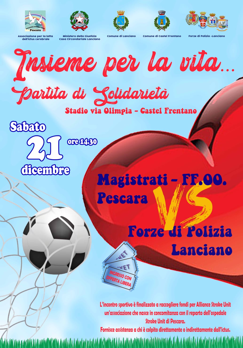 Insieme per la vita… Partita di solidarietà – Sabato 21 dicembre 2019