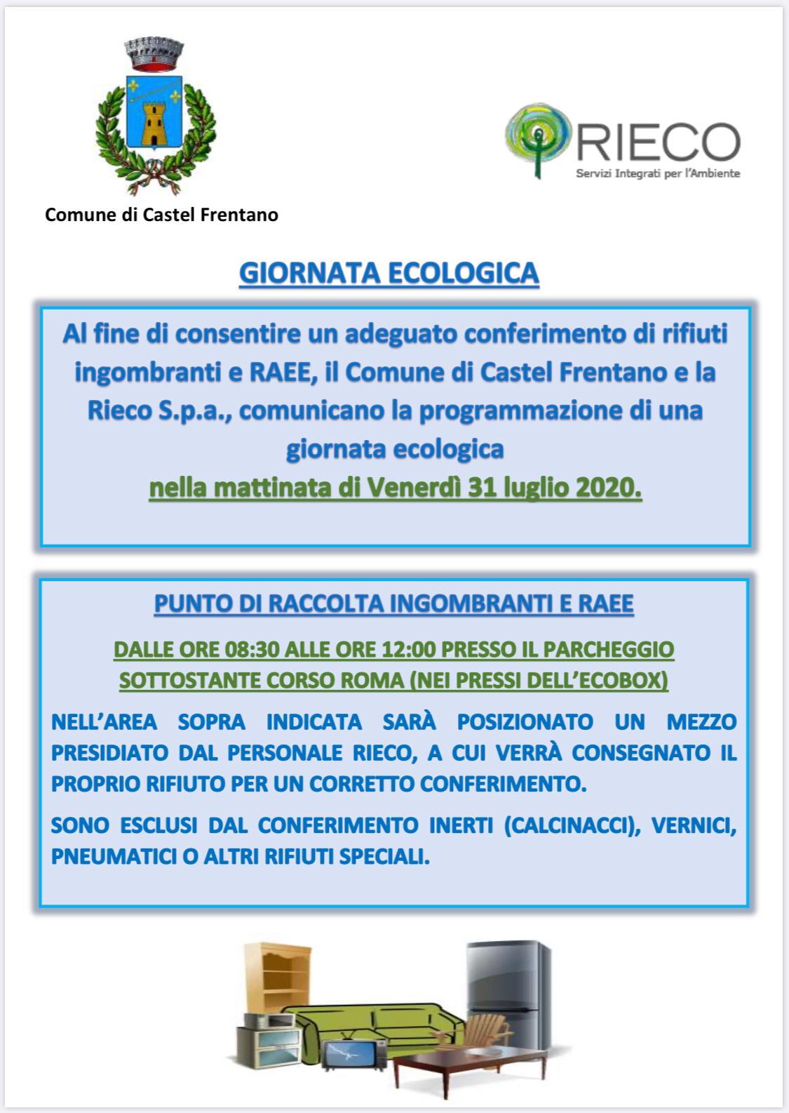 Il Comune di Castel Frentano e la Rieco S.p.a. comunicano la programmazione di una giornata ecologica per agevolare il corretto conferimento di rifiuti ingombranti e RAEE.