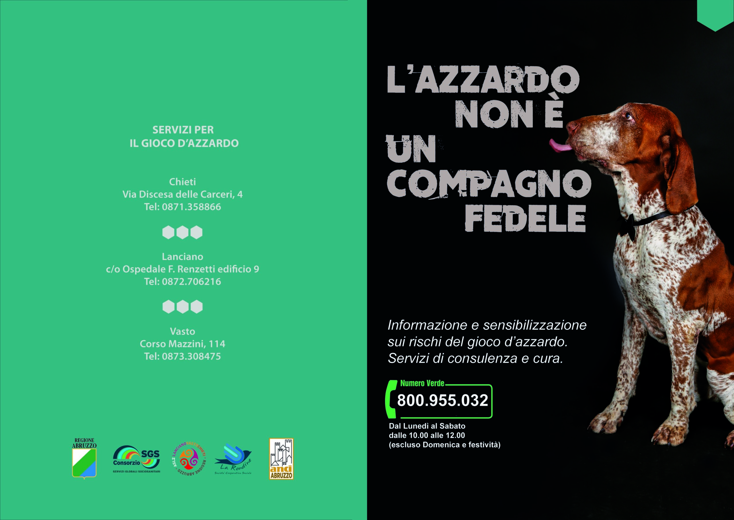 Anche l’Amministrazione comunale di Castel Frentano, particolarmente sensibile ad una tematica così importante, partecipa alla campagna di sensibilizzazione contro il gioco d’azzardo. L’iniziativa è promossa dalla Regione Abruzzo, Asl Lanciano-Vasto-Chieti, Anci Abruzzo, Consorzio SGS e la Cooperativa Sociale La Rondine.