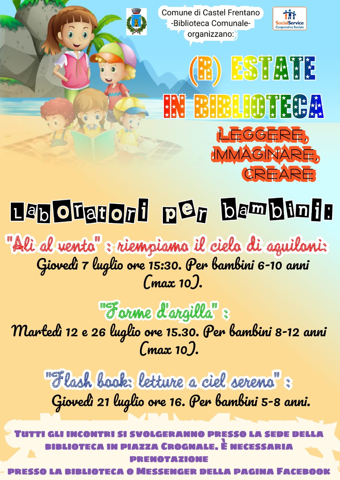 La Biblioteca Comunale di Castel Frentano organizza “R…Estate in biblioteca”, una serie di laboratori per bambini che si terrano nel mese di luglio.