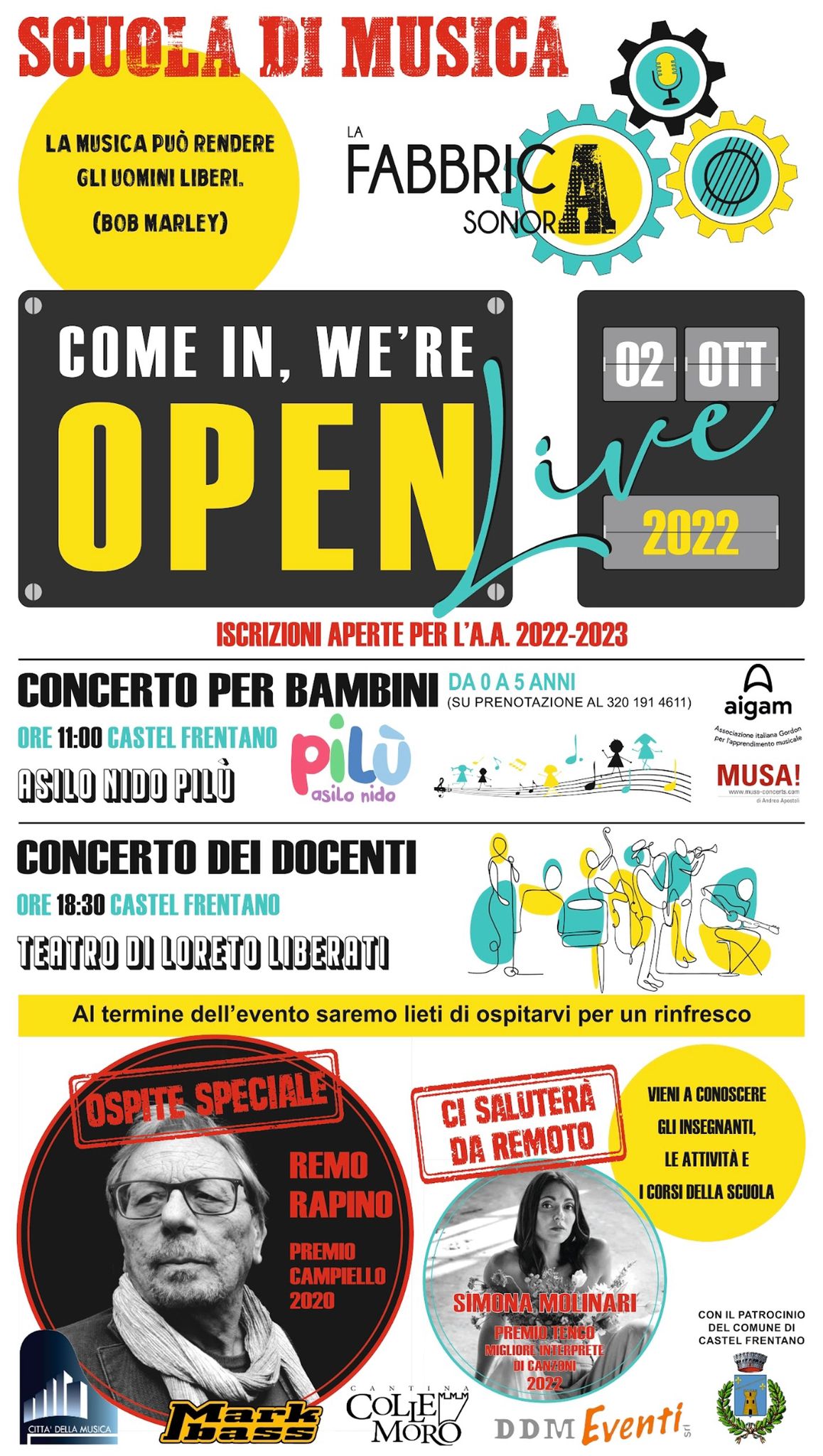 La nuova scuola di musica “La Fabbrica Sonora”, per presentare la scuola e il corpo docenti, organizza, domenica 2 ottobre presso il Teatro “Di Loreto Liberati” di Castel Frentano, due concerti (per bambini e dei docenti).