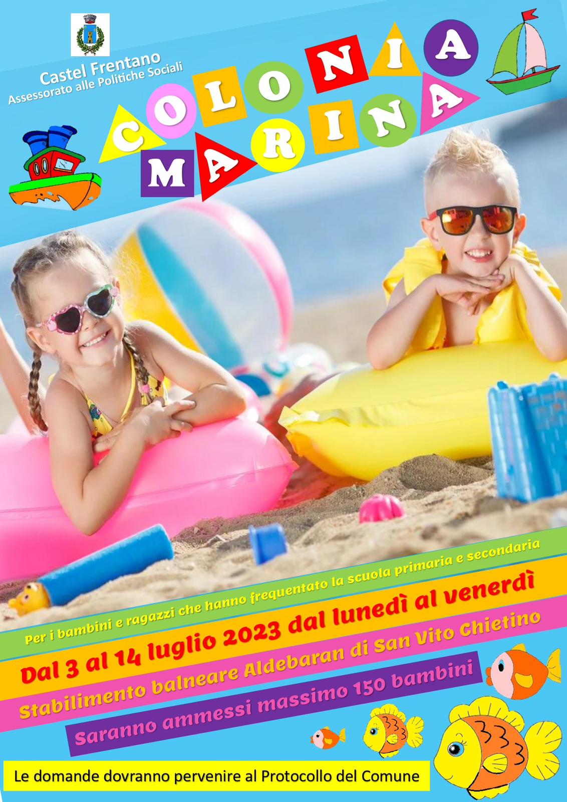 Dal 3 al 14 luglio, il Comune di Castel Frentano torna a riproporre la colonia marina per minori.